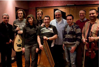 Second, the songs are not sung in the common modern-day accompaniment style, with guitars or lutes in a conjectural revamping of the Rennaissance styles of pre-1492 Spain. Instead, they are performed by a stellar cast of Turkish professional musicians, mostly Roma, who have been working intensely at the forefront of both the folk and classical Turkish music scenes for decades. The collaboration occurs in much the same way as it did in previous centuries, whereby the Sephardic vocal tradition of homespun a capella singing is combined for the wedding with the professional folk ensembles (typically performed with tambourine, darabuka, ud, kanun, clarinet and violin) when instruments were needed. The musicians in the Sephardic tradition were typically referred to as tanyedores, but this term in no way implied the ethnicity of the musician, as those hired for weddings were not necessarily Jewish, but were just as often Greek, Turkish, Roma or Macedonian. The instrumentalists of Ensemble Saltiel adorn the music with nuanced ornaments and interweave taksim (explorative instrumental improvisations) throughout the songs, the result being a concerted whole that gives generous space to the accompanists to present their art in an ever-changing format.
